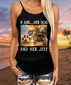 a Girl Her Dog And Her Jeep Criss-Cross Tanktop And Legging Set