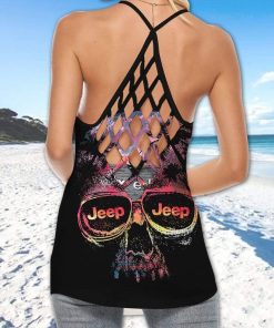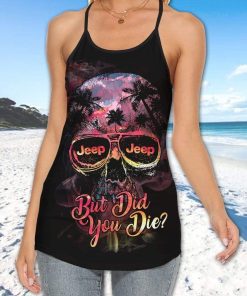 Jeep Skull Palm Tree Sunset Cross Tank Top – Legging 3d